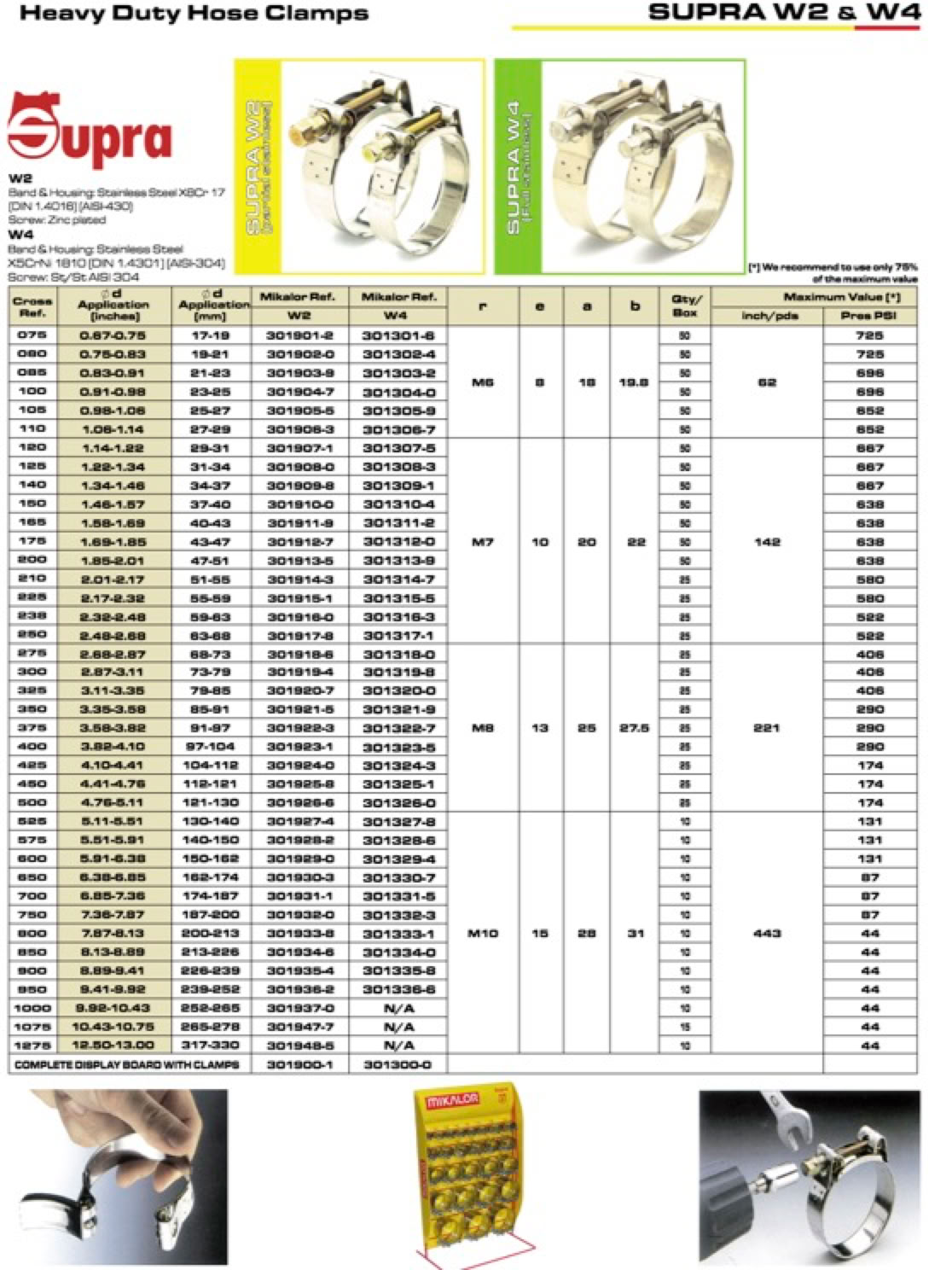Mikalor Hose Clamps manufacture a complete range of metal clamps. We stock a wide variety of Mikalor’s Supra Heavy Duty and ASFA Medium Duty Clamps for industrial, automotive, and agricultural machinery.